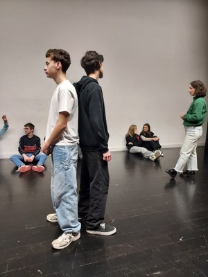 Mardi 9 décembre les élèves de prepa 1 ont participé à un atelier sur la voix et la posture, animé par Karine Ehret et Bertille Rouland à l'espace culturel St Marc.